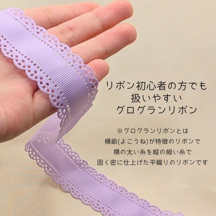 両サイドが型抜きされ、レースのようなデザインになったグログランリボンです。