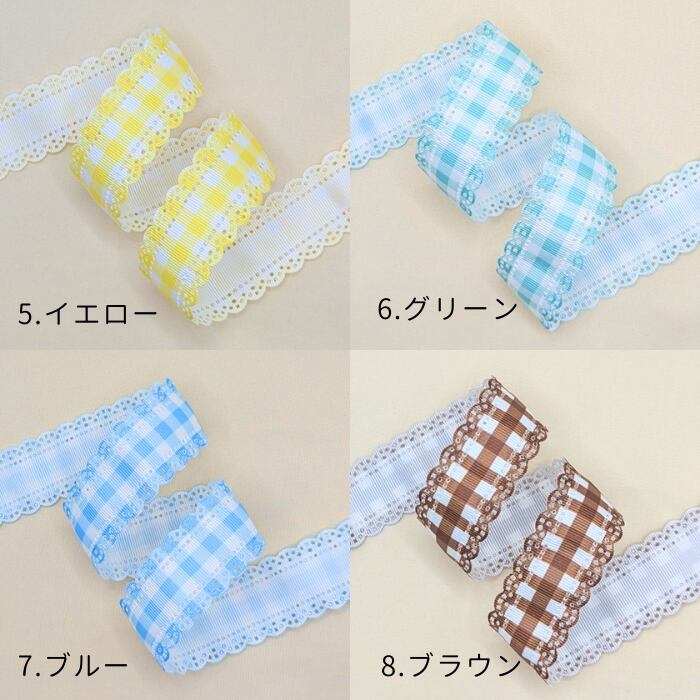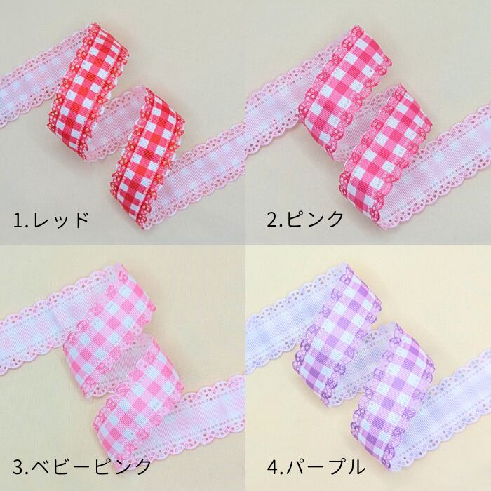 【1m】チェック柄 型抜きレース グログランリボン 幅30mm 全12種類